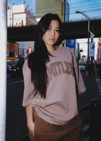 Short sleeve t-shirt featuring the ‘Limitless’ arch logo artwork at the front. In the colour Desert Sand. Oversized fit.